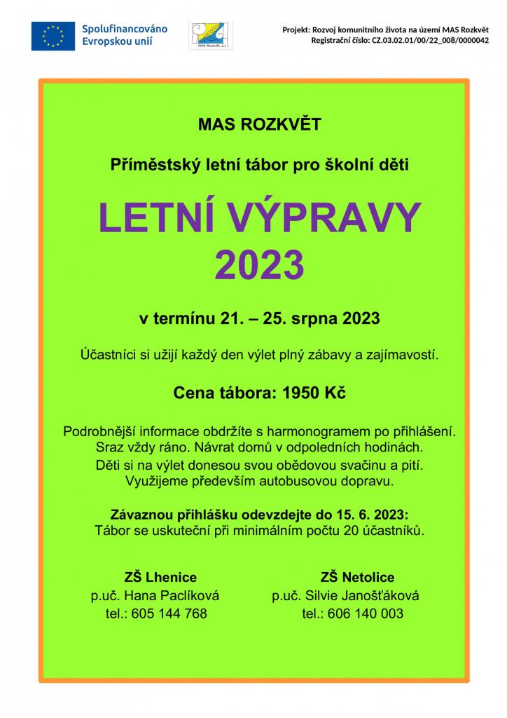 Nabídka příměstských táborů ve spolupráci s MAS Rozkvět z.s.